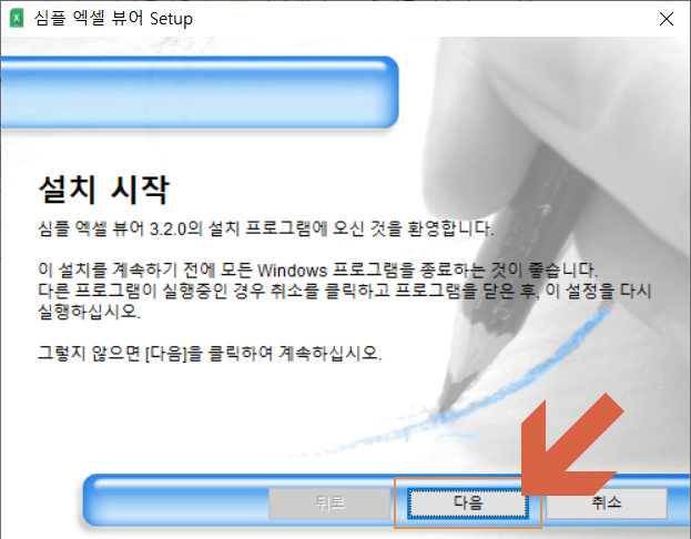 설치가 시작됩니다. <다음>을 누르세요.