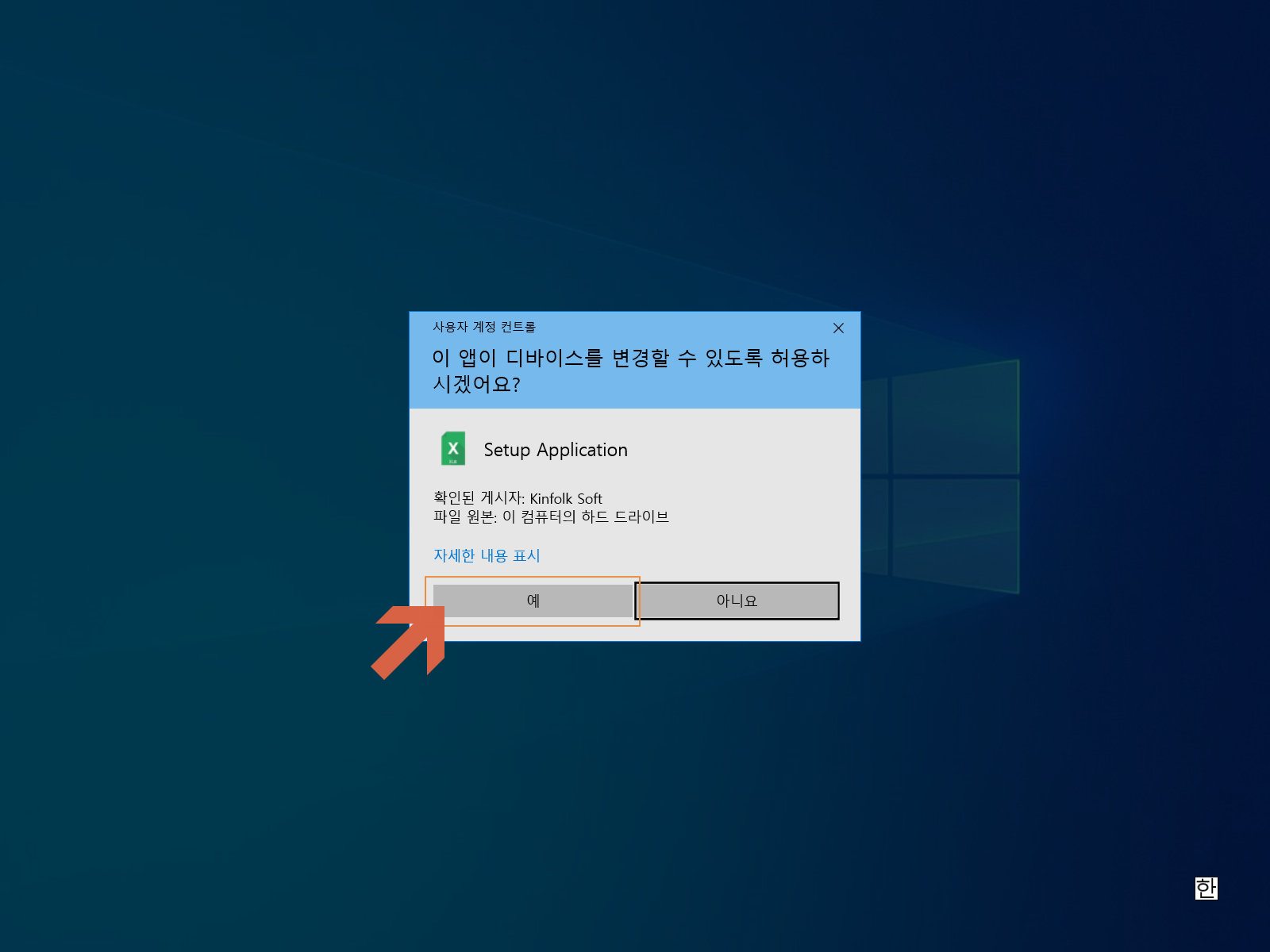 <예, 내용에 동의하고 설치를 진행합니다.>를 체크합니다.