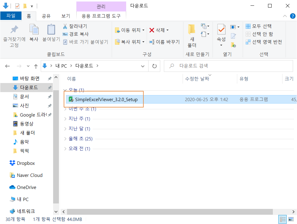 다운로드가 완료되면 다운로드 폴더에 설치 파일이 보입니다. 설치 파일을 실행합니다.