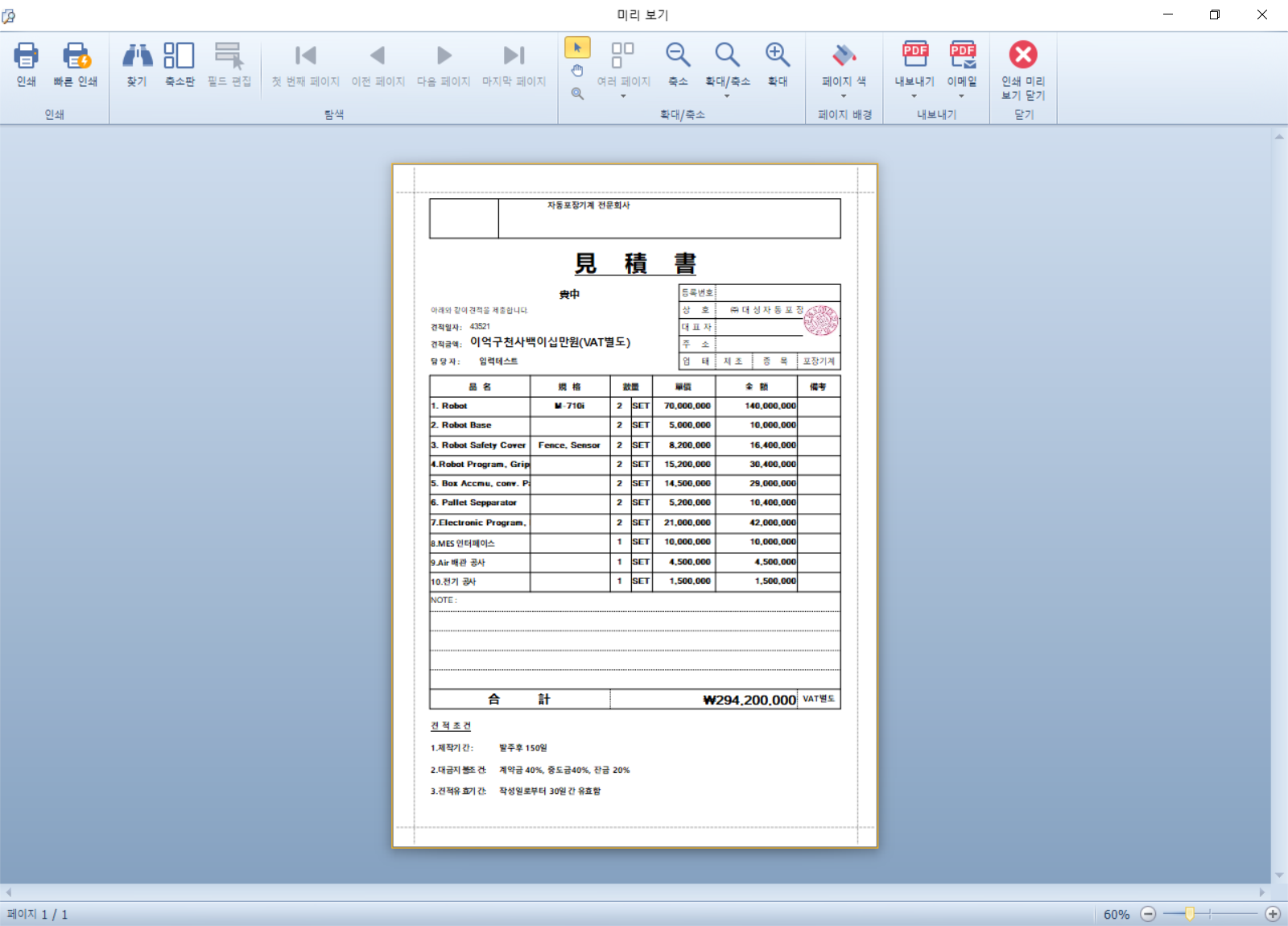 기존 엑셀 프로그램과의 호환성이 뛰어나군요. 상당히 일관성있는 모습으로 인쇄가 가능한듯 합니다.