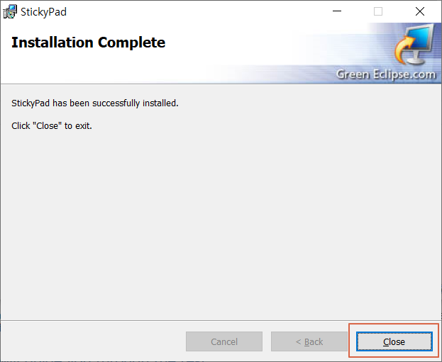 스티키 패드 설치가 완료되었습니다. <Close>를 눌러주세요.