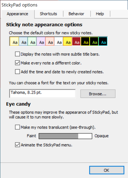 메모를 인쇄하거나 다른 응용 프로그램에 붙여 넣거나 친구에게 이메일로 보낼 수 있습니다. 노트를 반투명하게 만들어 다른 창 위에 띄울 수 있으므로 노트와 작업중인 내용을 모두 볼 수 있으며, 로그 오프하면 StickyPad가 모든 메모를 기억하고 다시 로그온하면 메모가 여전히 남아 있습니다.