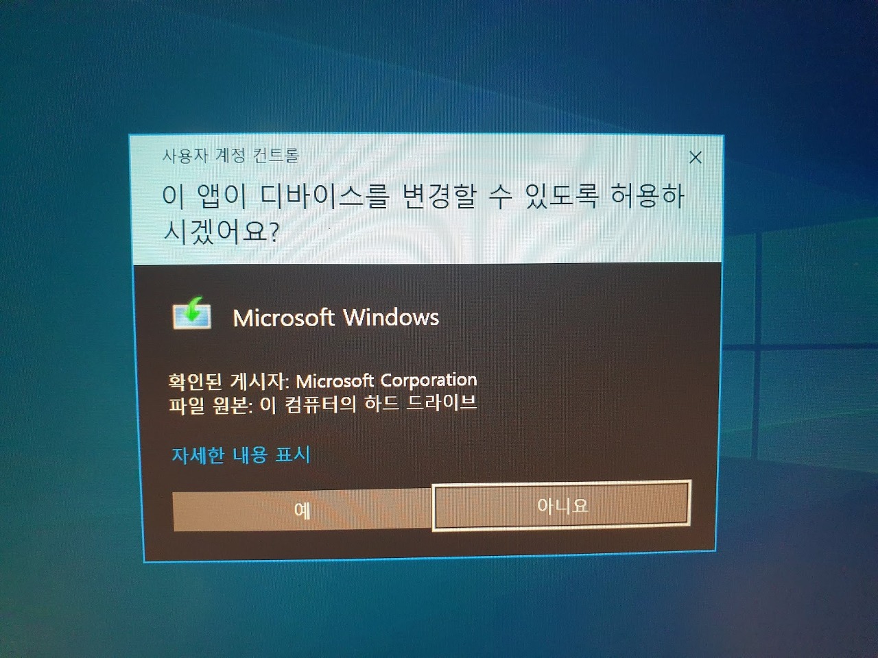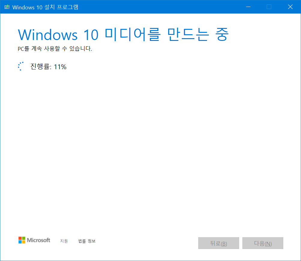 다운로드가 되면 윈도우10이 설치될 수 있도록 미디어를 만듭니다.