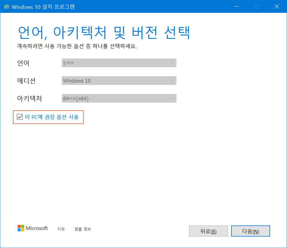 이제 윈도우10을 설치하기 위한 사전 단계가 완료되었습니다.
