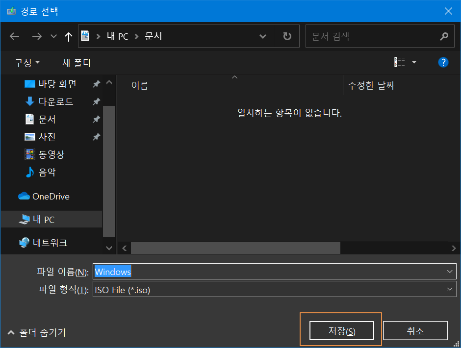 윈도우 설치 파일을 저장해야 합니다. 이름을 따로 설정하여도 되지만 그냥 <저장>을 눌러줍니다.
