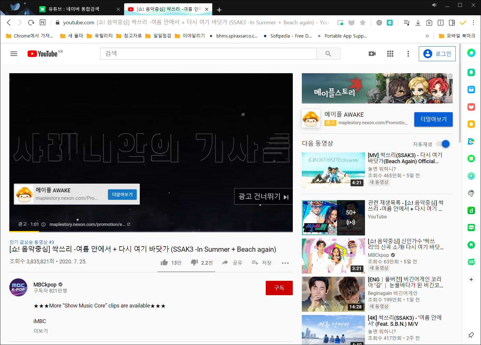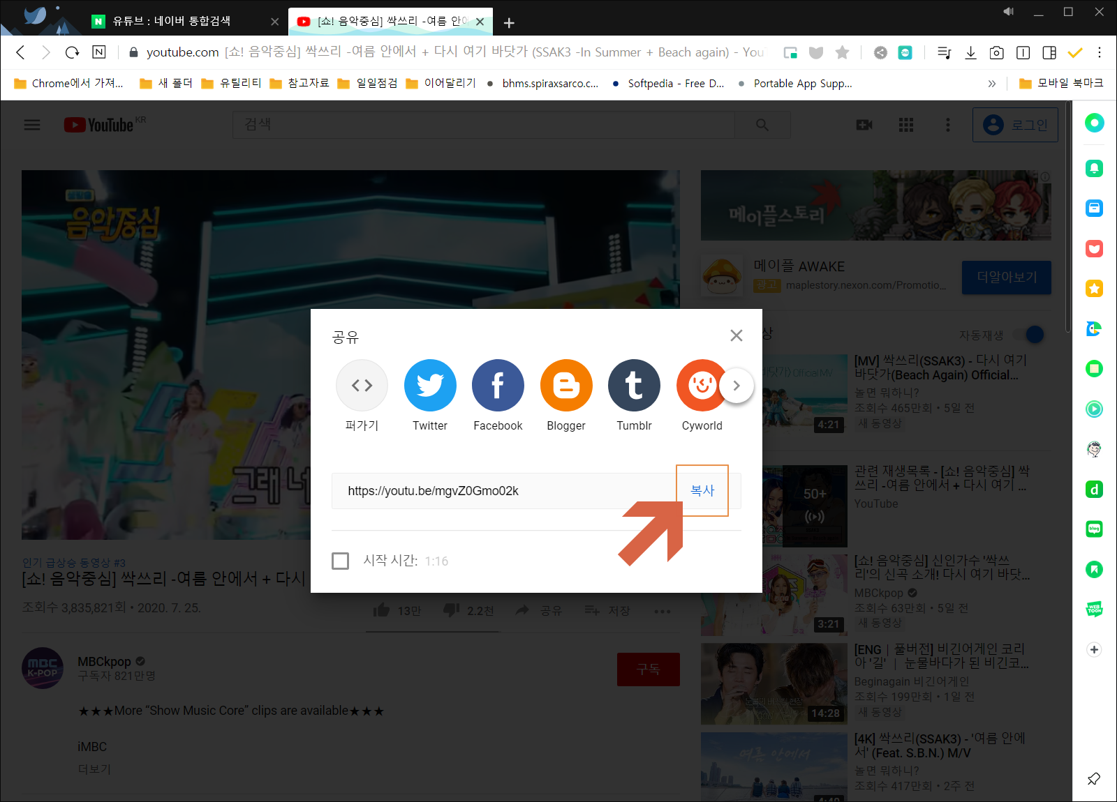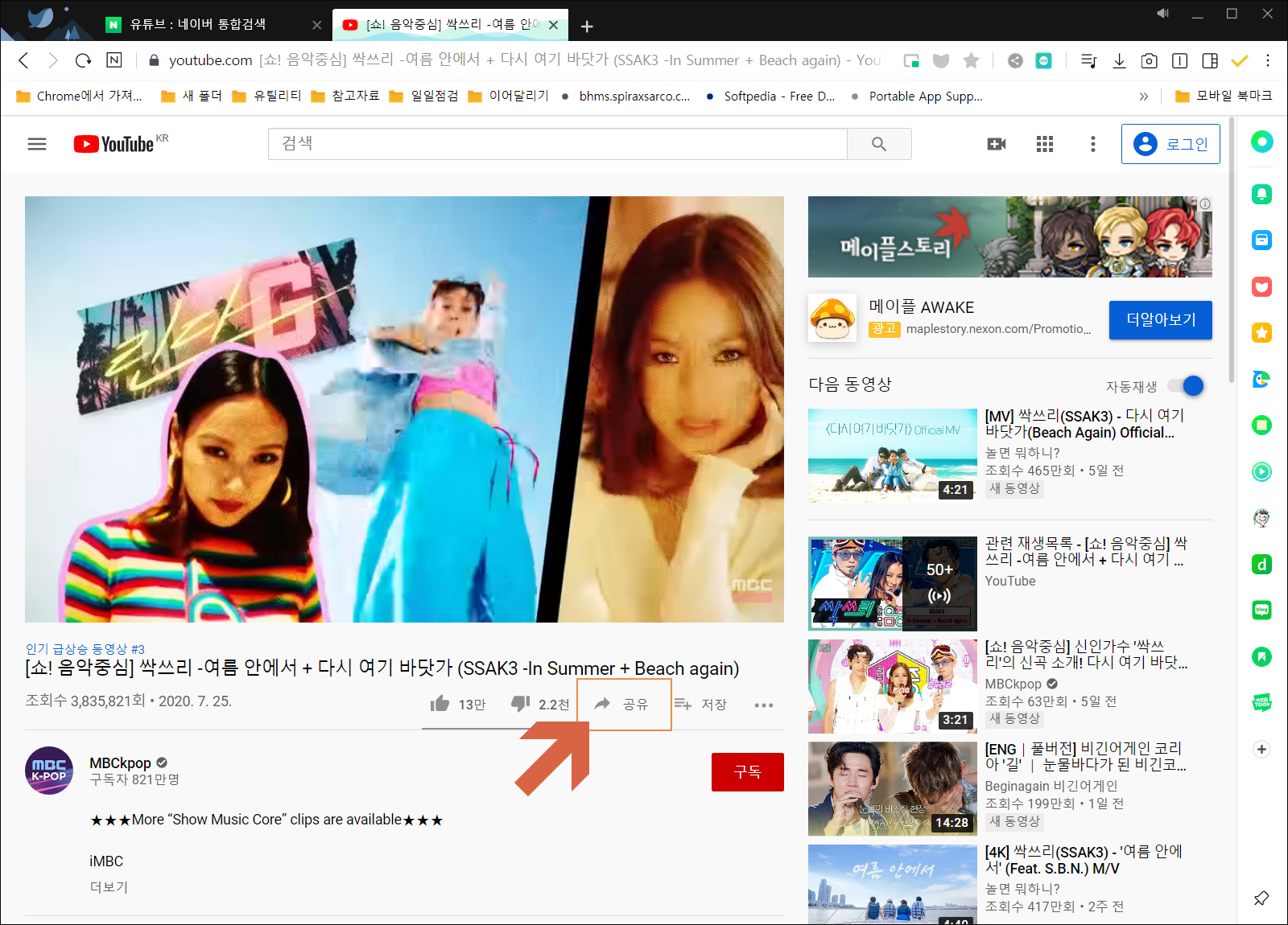 싹쓰리의 영상으로 이동하였습니다. 영상을 다운로드 해볼까요?