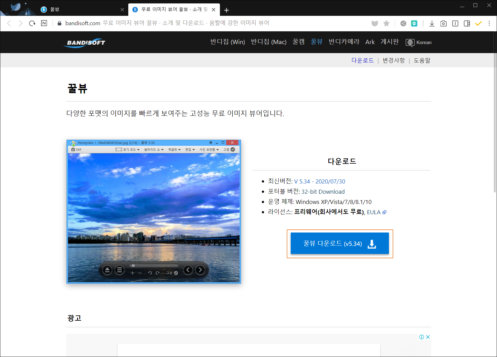 무료 사진 뷰어 프로그램, 꿀뷰 다운로드를 하시려면 여기를 참조하세요.