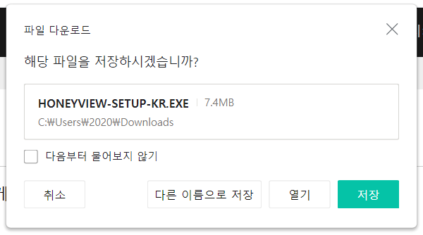 <저장>을 누르면 설치 파일이 다운로드가 시작됩니다.