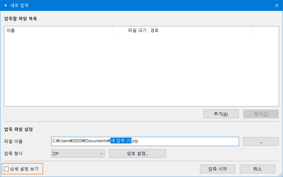 이제 압축 파일 목록에 등록이 되었고, 파일 이름도 변경을 해볼까요?