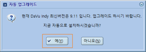 다뷰 인디(DaVu Indy) 9.11로 업그레이드가 완료되었습니다. <완료>를 누릅니다.