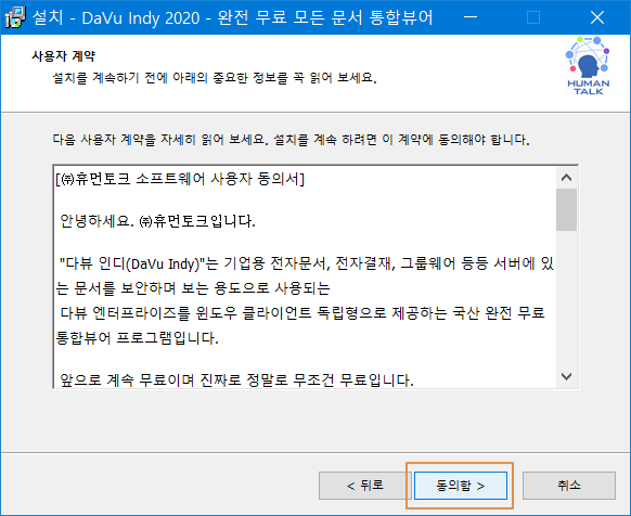 여기도 나오는군요. 다뷰 인디(DaVu Indy)는 앞으로 계속 무료이며 진짜로 정말로 무조건 무료입니다. <동의함>을 누릅니다.