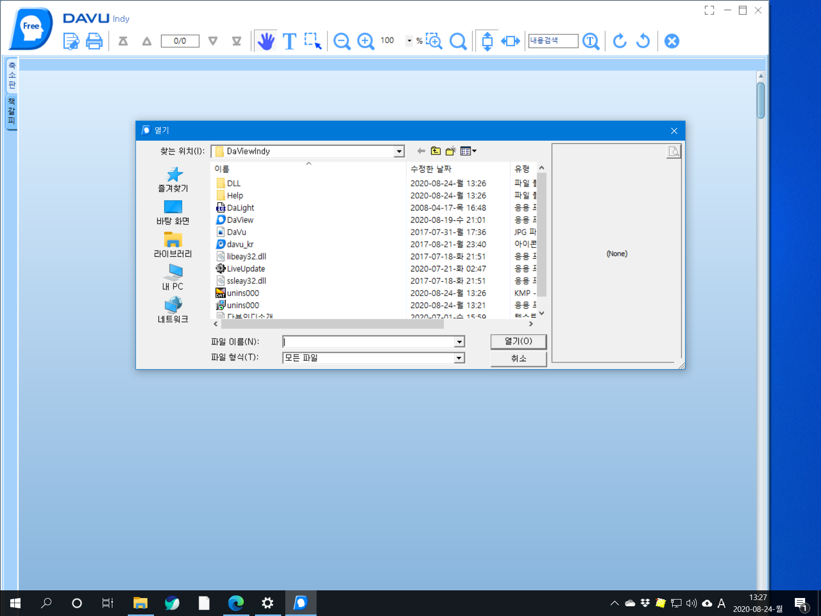 다뷰 인디가 실행되었습니다. 바로 파일 열기 창이 열렸습니다.