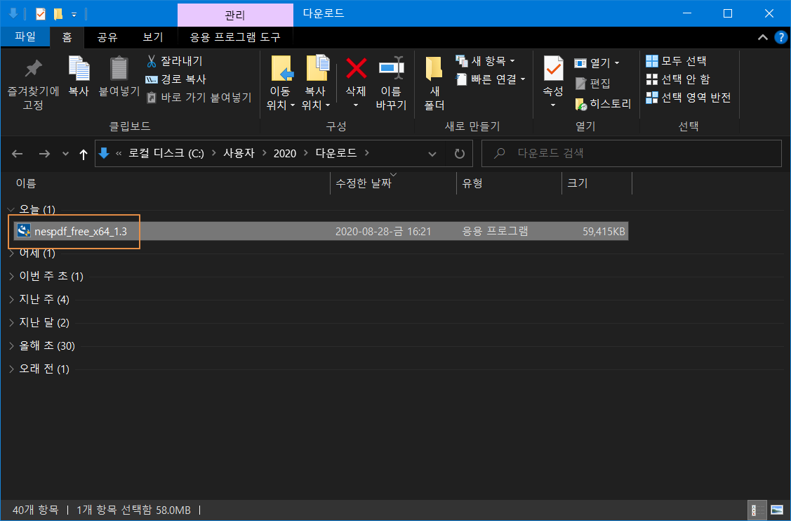NesPDF 설치 프로그램이 다운로드가 완료되면 내려받은 폴더로 이동하여 설치 파일을 실행합니다.