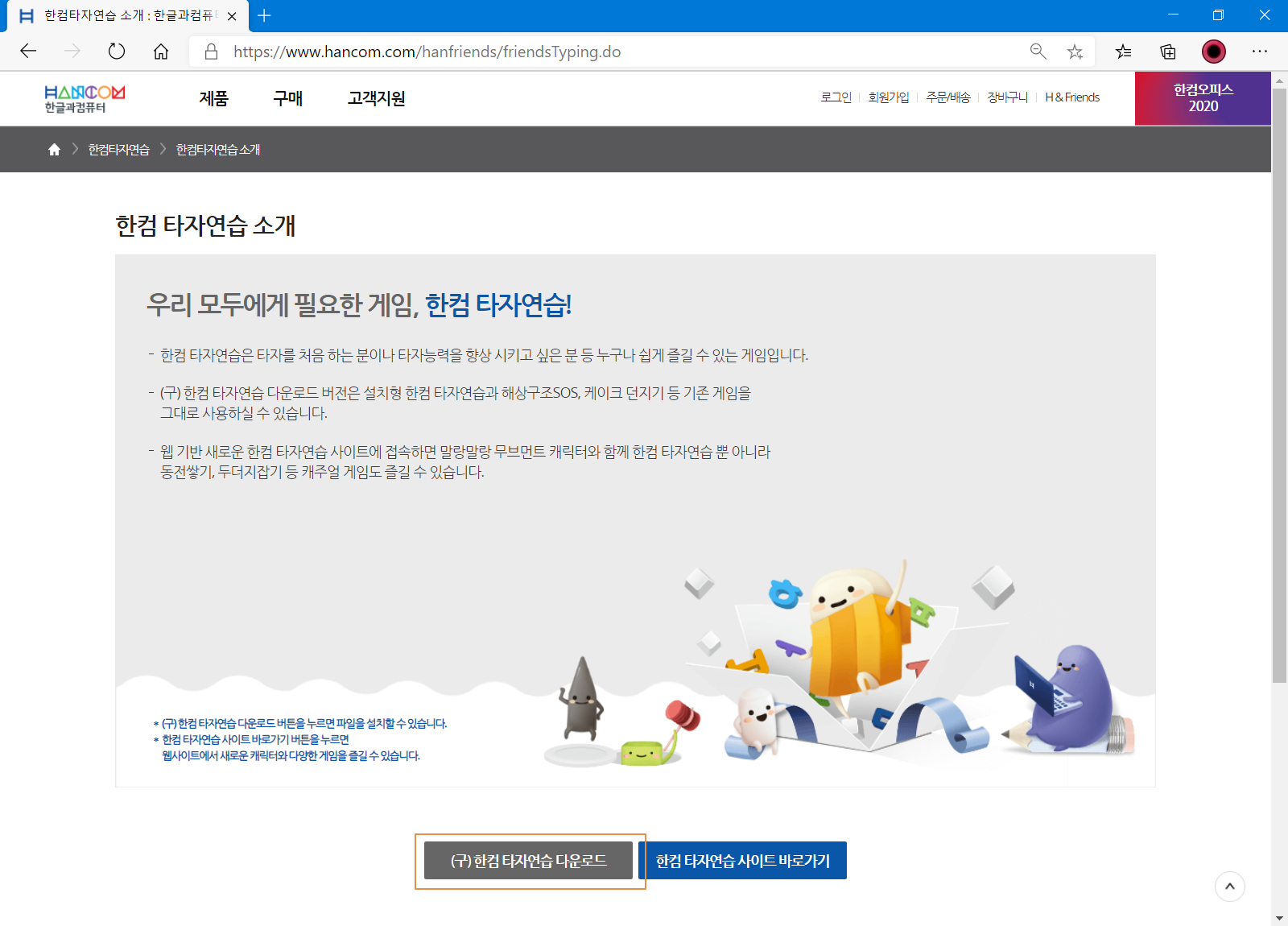 한컴타자연습 다운로드 및 무료 설치를 하시려면 여기를 참조하세요.