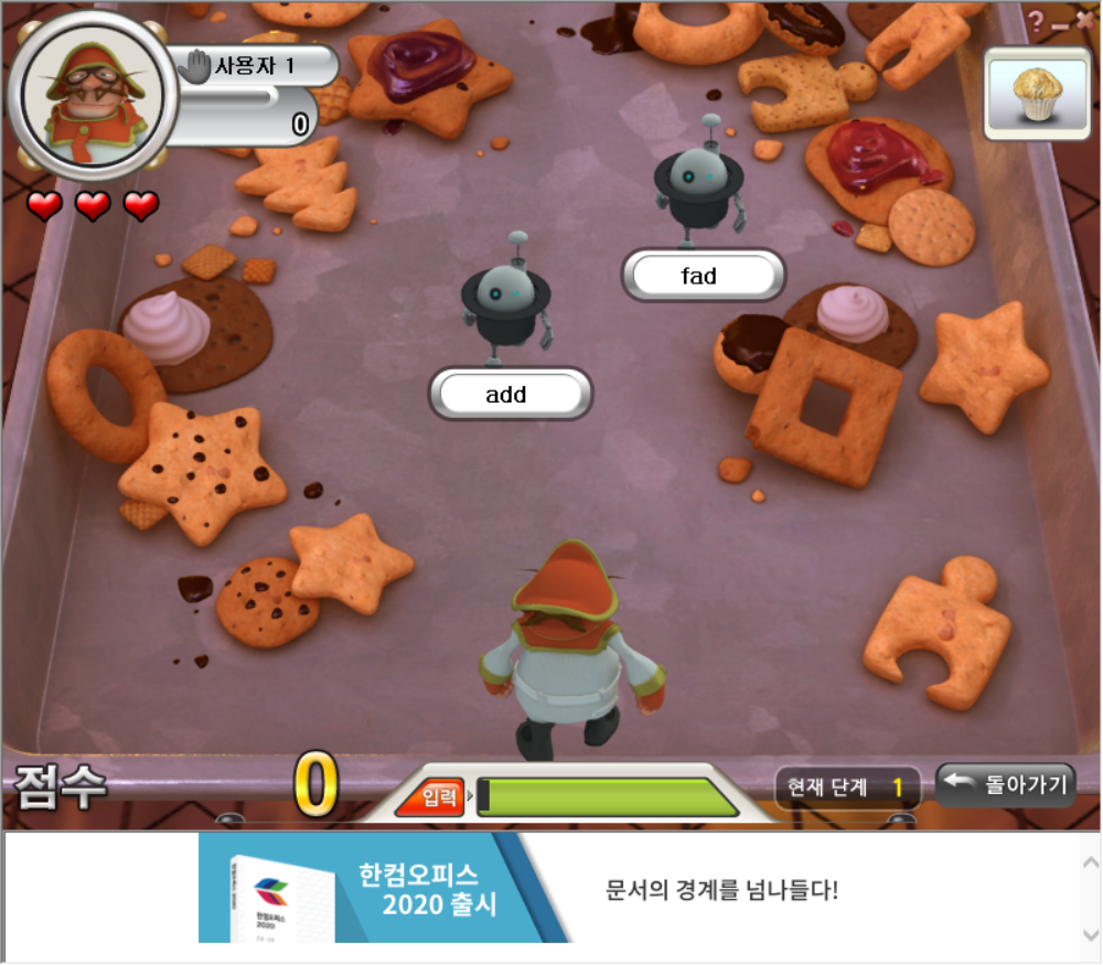 나타나는 적을 모두 물리치는 놀이입니다. 케이크를 던져서 나쁜 로봇들을 물리치세요~! 게임 무대에 표시된 별이 많을수록 어렵습니다.