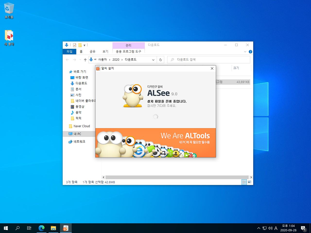다운로드 폴더로 이동하면 알씨 설치 파일이 보입니다. 알씨 설치 파일을 실행합니다.