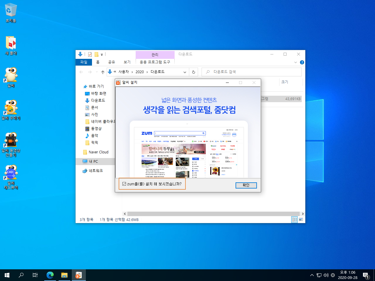 <zum을(를) 설치해 보시겠습니까?>를 체크 해제합니다.