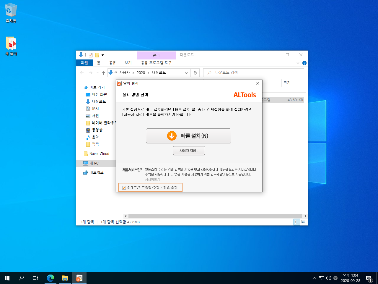 <빠른 설치>를 누르면 설치가 시작됩니다.
