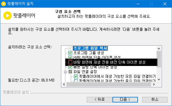 동영상 전용 플레이어로 사용할 수도 있도록 따로 바탕화면에 재생 전용 버전의 단축 아이콘이 생성되도록 하기 위해서는 <바탕화면에 재생 전용 버전 단축 아이콘 생성>에 체크를 합니다.