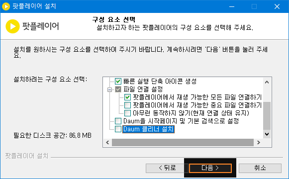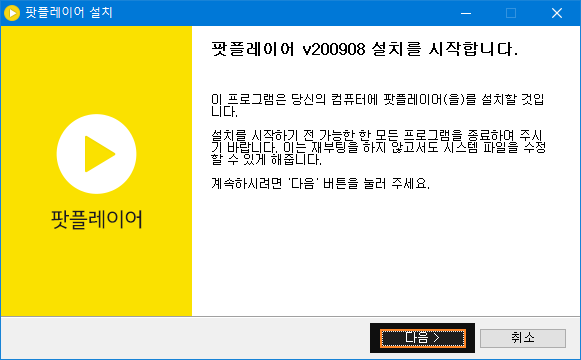 <다음>을 누르면 팟플레이어 설치가 시작됩니다.