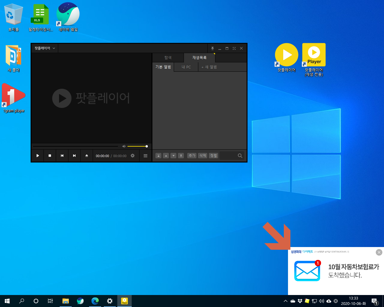 바탕화면에 팟플레이어와 재생 전용 팟플레이어 아이콘이 생성되었습니다.