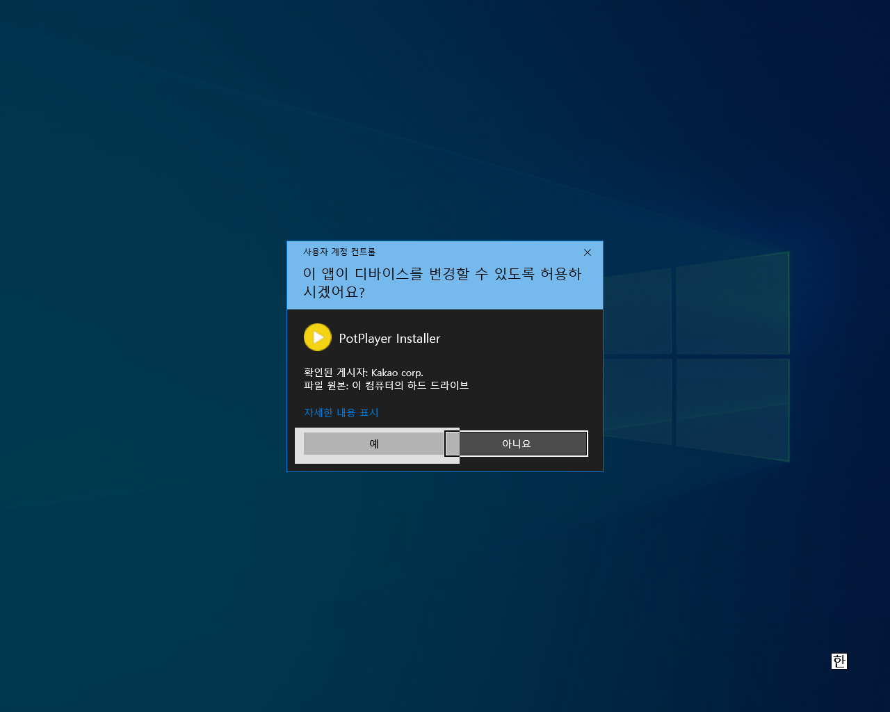 "이 앱이 디바이스를 변경할 수 있도록 허용하시겠어요?"라고 물어보는데 <예>를 눌러보시면 됩니다.