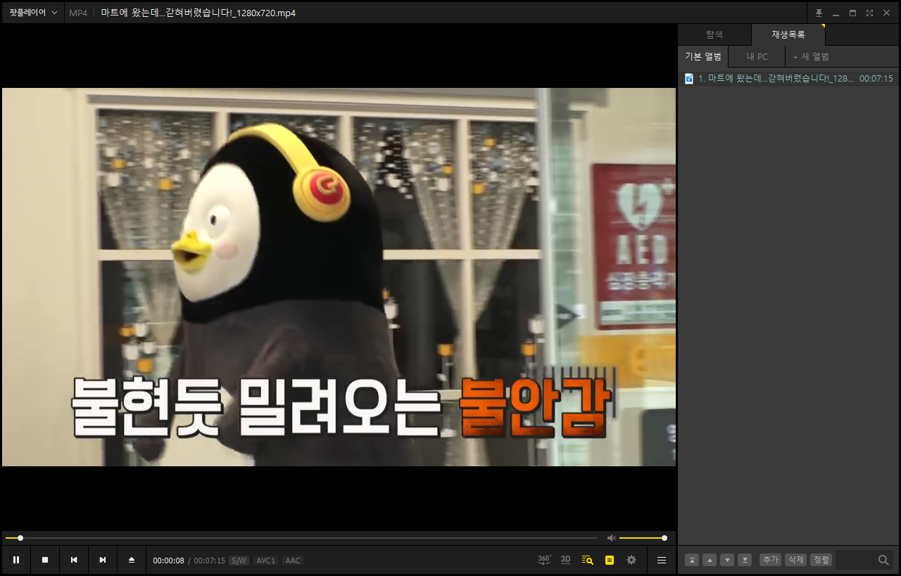 컴퓨터에 저장된 동영상을 플레이하였습니다. 재생 전용은 확실히 라이브 버전에 비해 가볍게 느껴지는 듯합니다. 동영상 플레이어로 사용하기에는 재생 전용 팟플레이어로 활용하는 것이 좋을 듯합니다.