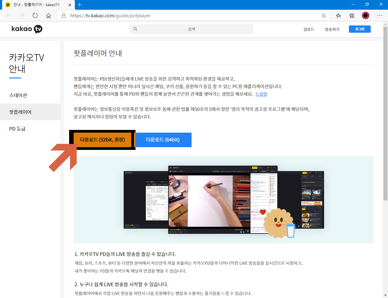 카카오 팟플레이어, 카카오TV팟 플레이어 다운로드하시려면 여기를 참조하세요.