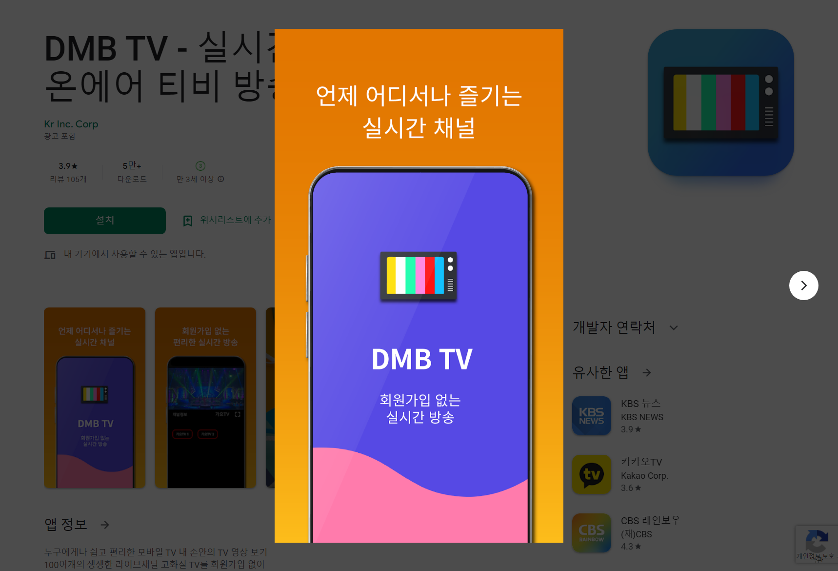 DMB TV - 실시간TV 시청, 온에어 티비 방송 - Google Play 앱