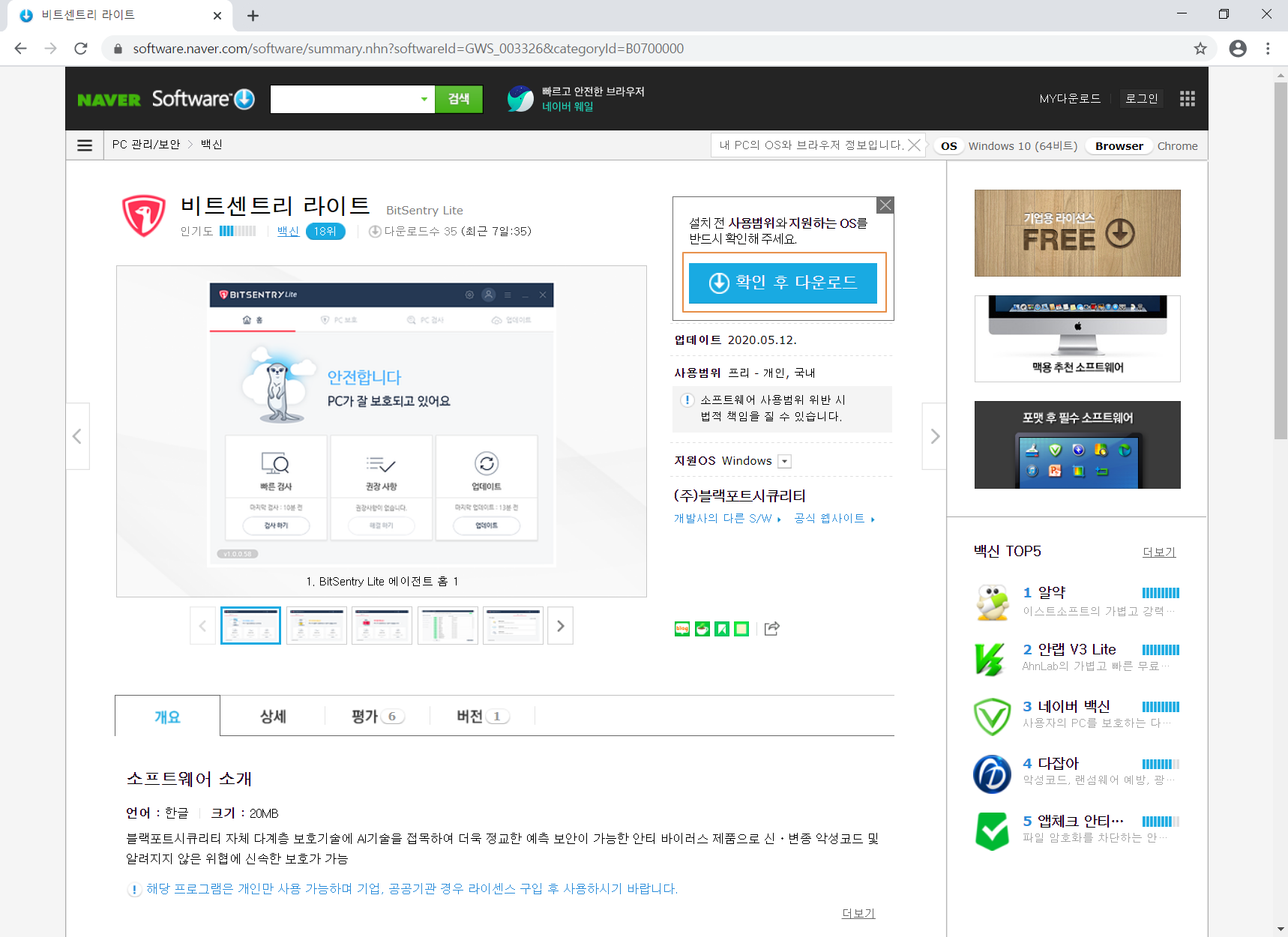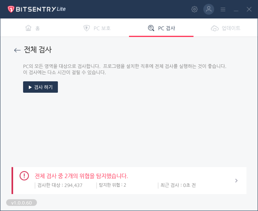 무료 백신, 비트센트리 라이트(BitSentry Lite)를 다운로드하시려면 여기로 이동하세요. ▼