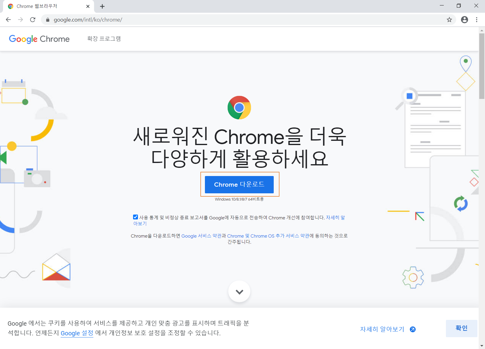 현재 인터넷 웹 브라우저 사용자가 가장 많이 사용하는 구글의 Chrome 브라우저를 다운로드 하고 설치하는 과정을 정리하려고 합니다.